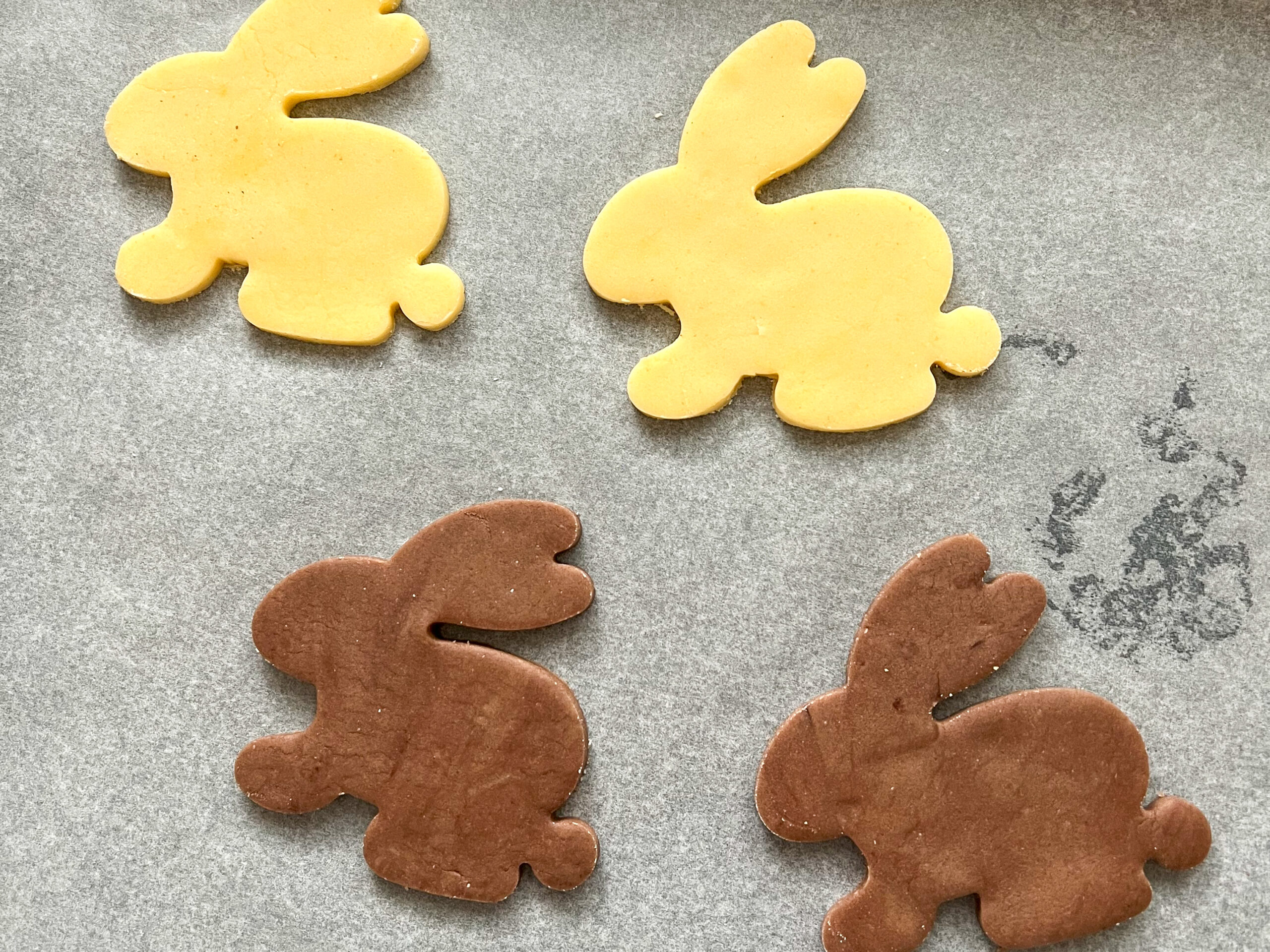 5. Vykrajujte zajíčky. Pomocí špachtle je opatrně naberte a naskládejte na plech vyložený pečícím papírem.