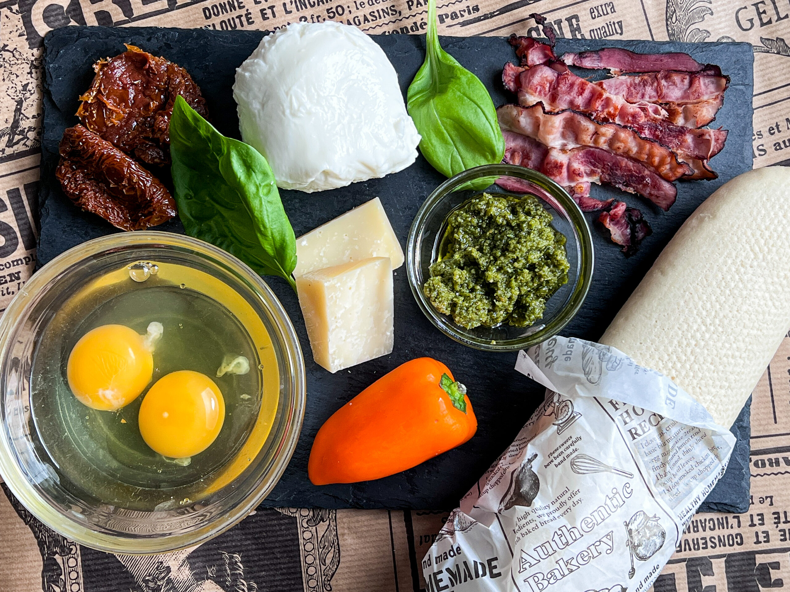 Zapečený italský sendvič Panini – sytá verze s vaječnou omeletou a pestem