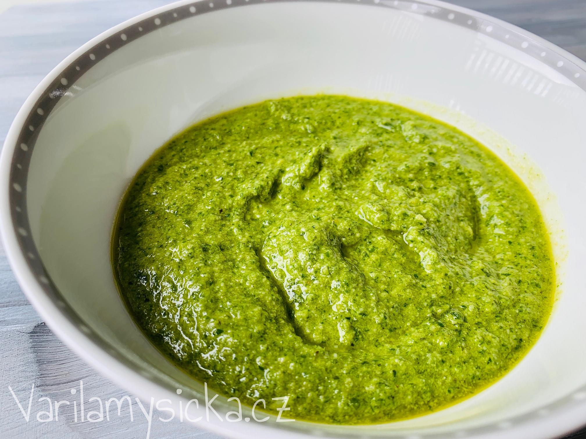 - Do mixéru nalijte olej, přidejte ořechy, rukolu, česnek a rozmixujte do hladka. Na závěr přidejte na jemno nastrouhaný sýr typu parmazán, dochuťte solí, pár kapkami vinného octa a ještě krátce promixujte.