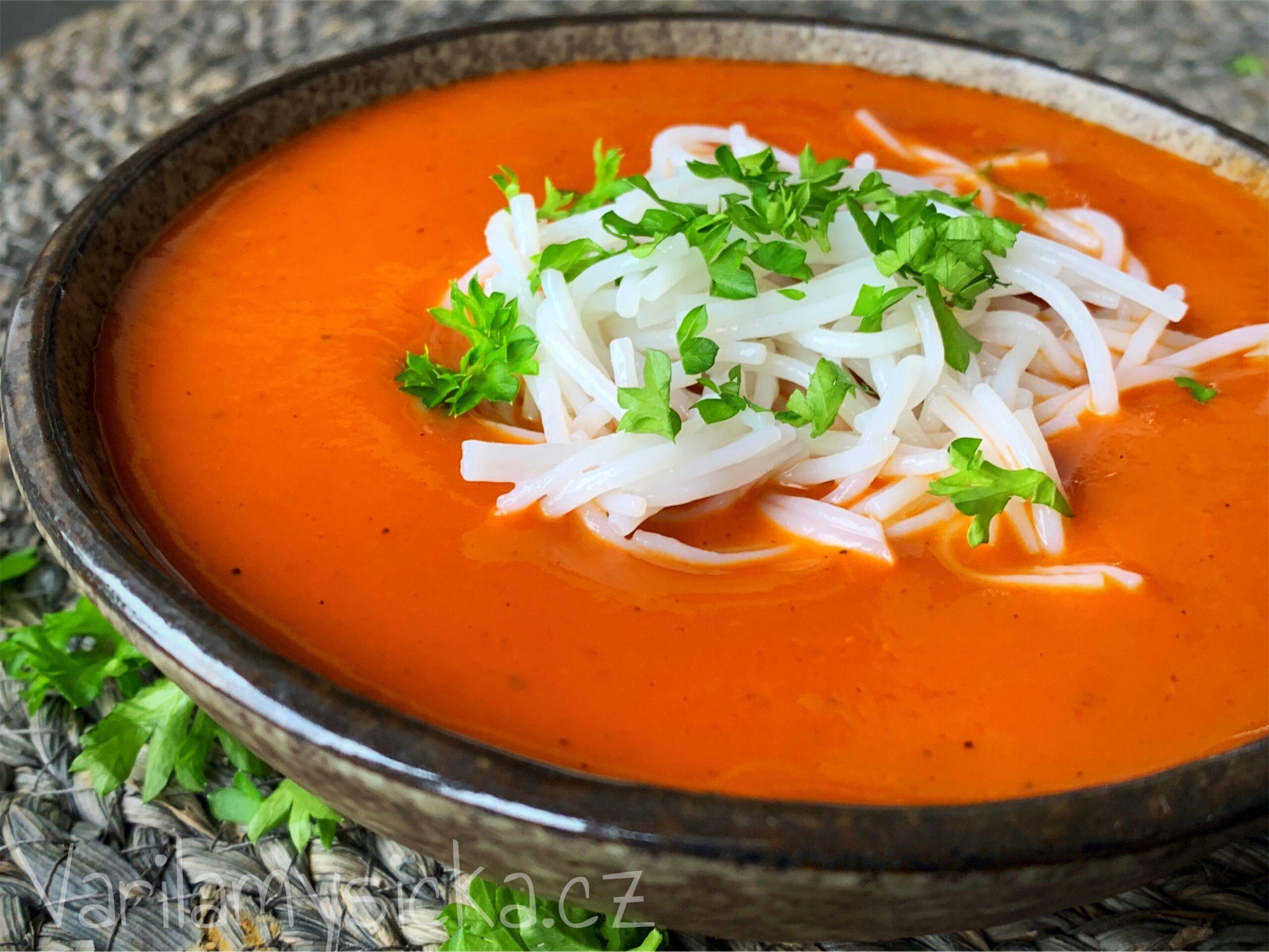 Do rajské polévky se nejčastěji přidávají nudle, těstovinová rýže nebo bílá rýže. Já jsem teď udělala variantu s rýžovými nudličkami.🙂