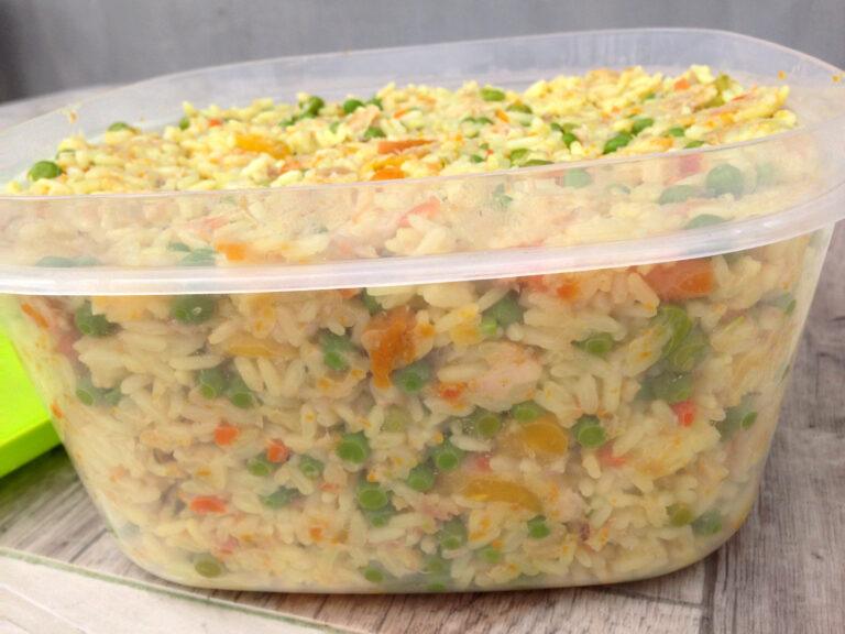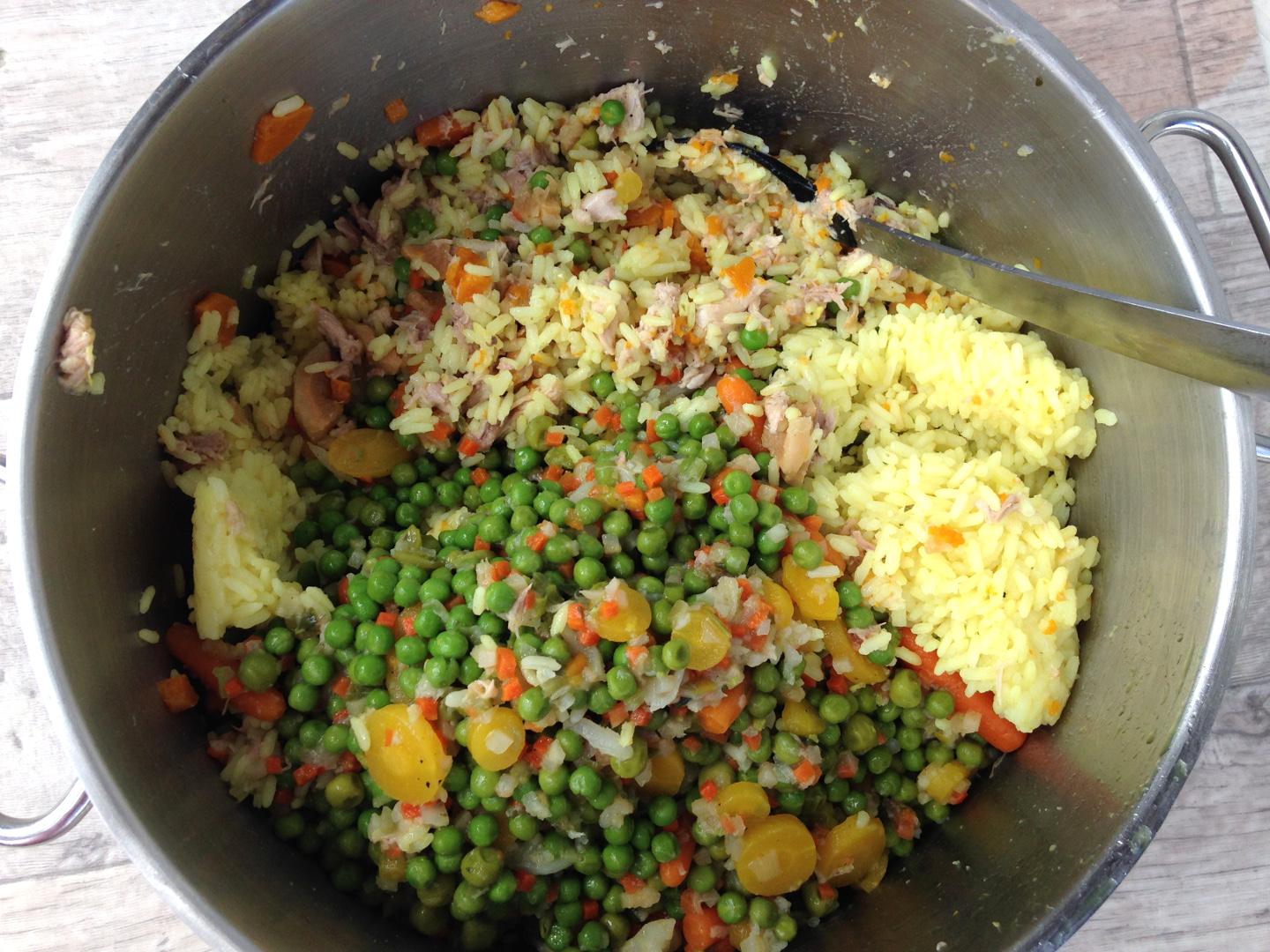 - Rýži uvařte nebo upečte v troubě. Typ rýže zvolte podle toho, co od jídla očekáváte. Já jsem zvolila nelepivou variantu z rýže parboiled.Tu jsem ochutila kořením z trhu, které obsahovalo sušenou zeleninu a kurkumu. Kurkuma dodá rýži jemnou chuť a barvu.