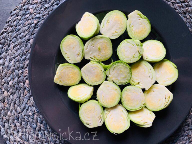 - Kapustičky omyju, seříznu na konci kousek toho malého košťálu a odstraním vrchní lístky, které jsou špinavé nebo jakkoliv špatné. Každou kapustičku překrojím na půl, posolím a řezem dolů položím na plech vyložený pečícím papírem, který potřu olejem. Peču do zezlátnutí na 200 stupňů asi 25 minut.