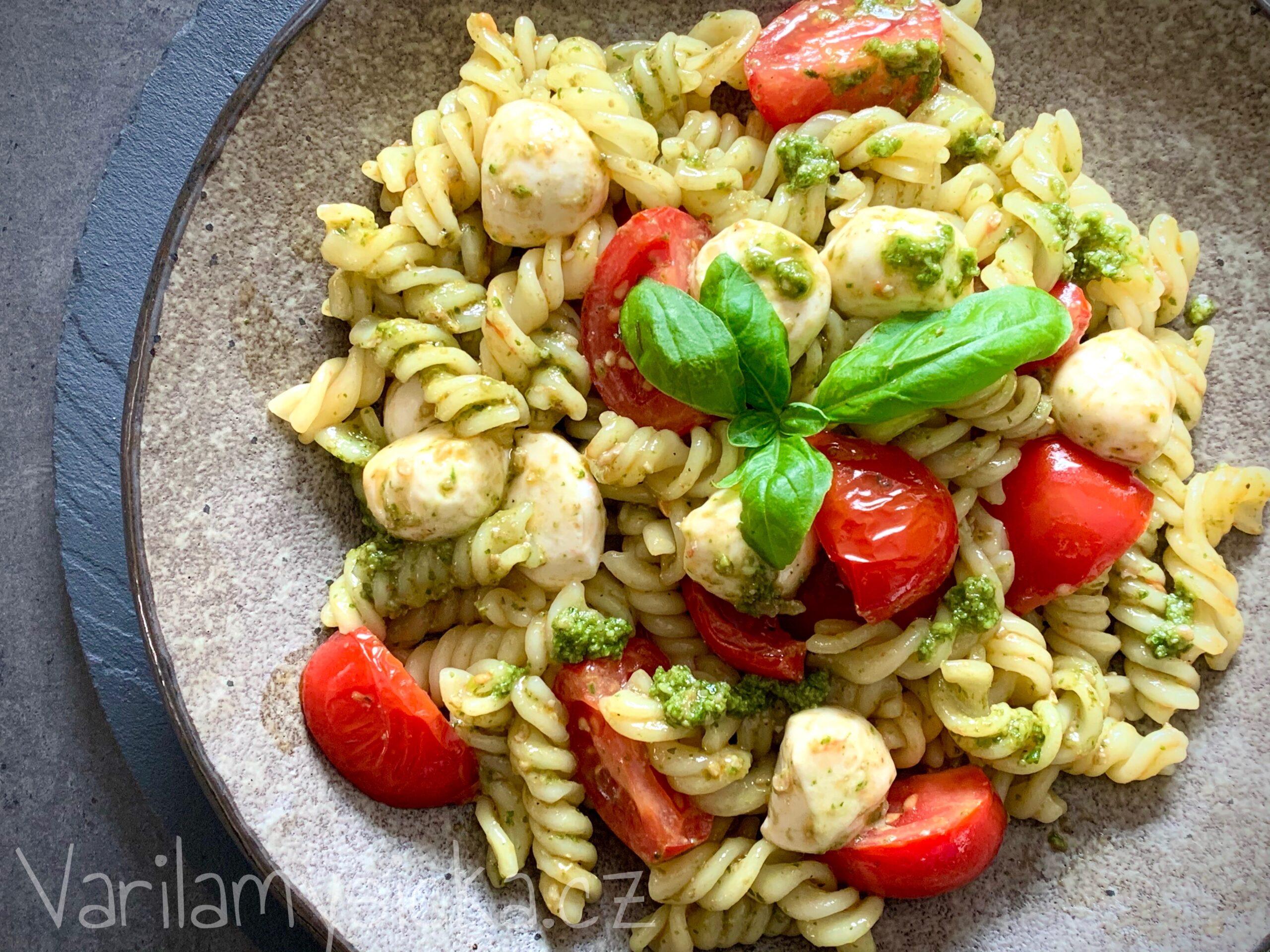 - Do pánve k rajčatům vsypu uvařené těstoviny a promíchám s přiměřeným množstvím pesta. Hotovo!